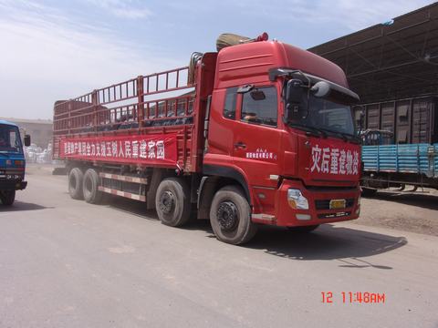 6月12日上午,由青海朝阳物流公司组织的首批五十辆装满灾后重建物资的重卡在省运管局赵局长的一声号令下从朝阳物流市场驶出,直奔玉树灾区,为灾后重建贡献力量。