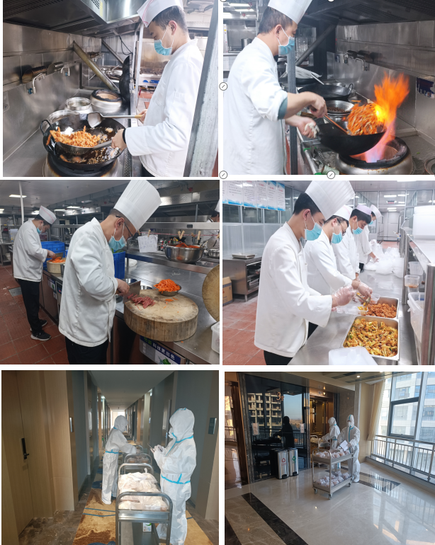 “疫情防控工作专班及高速卡口工作防疫逆行者们不顾危险奔赴一线,我们当仁不让为他们保障后勤!”每一位职工服从公司统一指挥,坚守自己的工作岗位。每天凌晨3点,厨房里就开始热闹起来了,切菜、掂勺、出锅、装盒……厨师们戴着口罩、帽子、手套,“全副武装”地站在操作台前,有条不紊地开始为“最美逆行者”每日三餐忙碌准备,保障防疫逆行者们在酒店期间能安心食宿。
